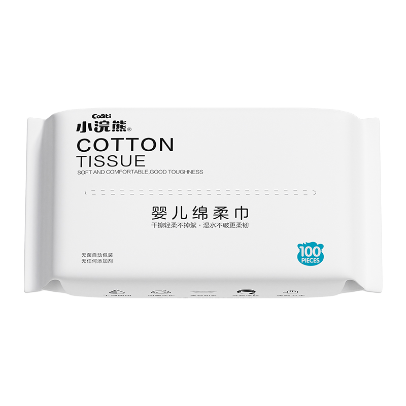 【品牌直供】小浣熊绵柔巾宝宝一次性洗脸巾新生儿抽取式柔软干湿两用100抽