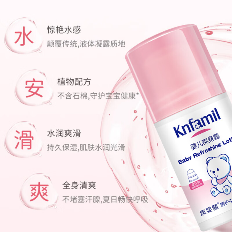 康婴健婴儿爽身露100ml祛痱止痒桃子水新生宝宝痱子水桃叶精华液体爽身粉天然去痱