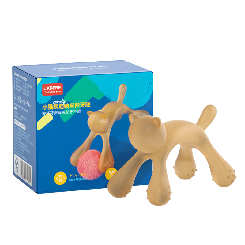 CKbebe正版小猫咪牙胶液态硅胶防卡喉按摩牙龈磨牙棒咬胶儿童玩具