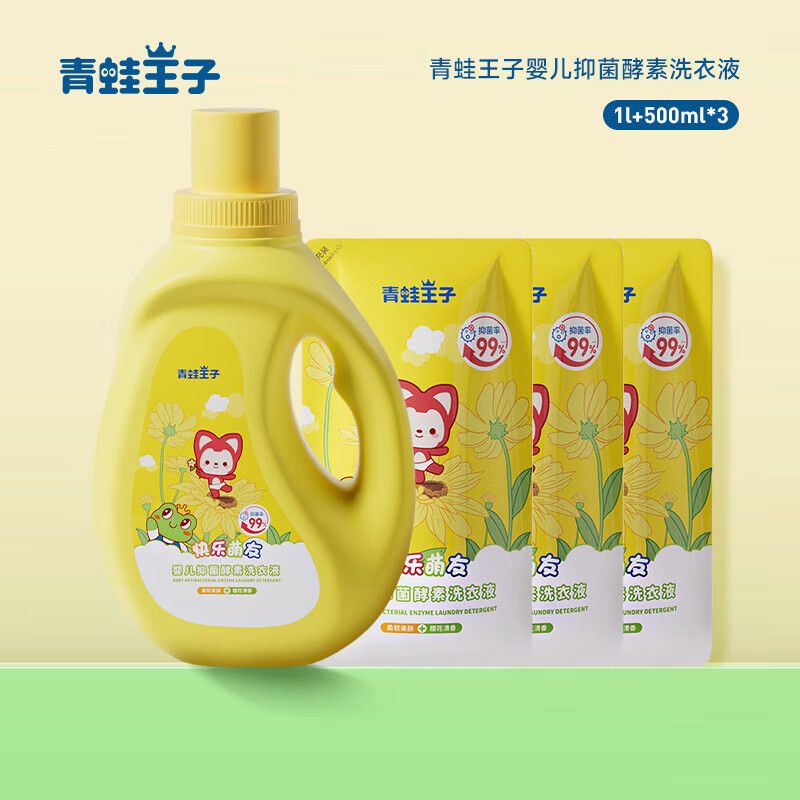 青蛙王子快乐萌友婴儿抑菌酵素洗衣液1KG*1+500ml*3袋