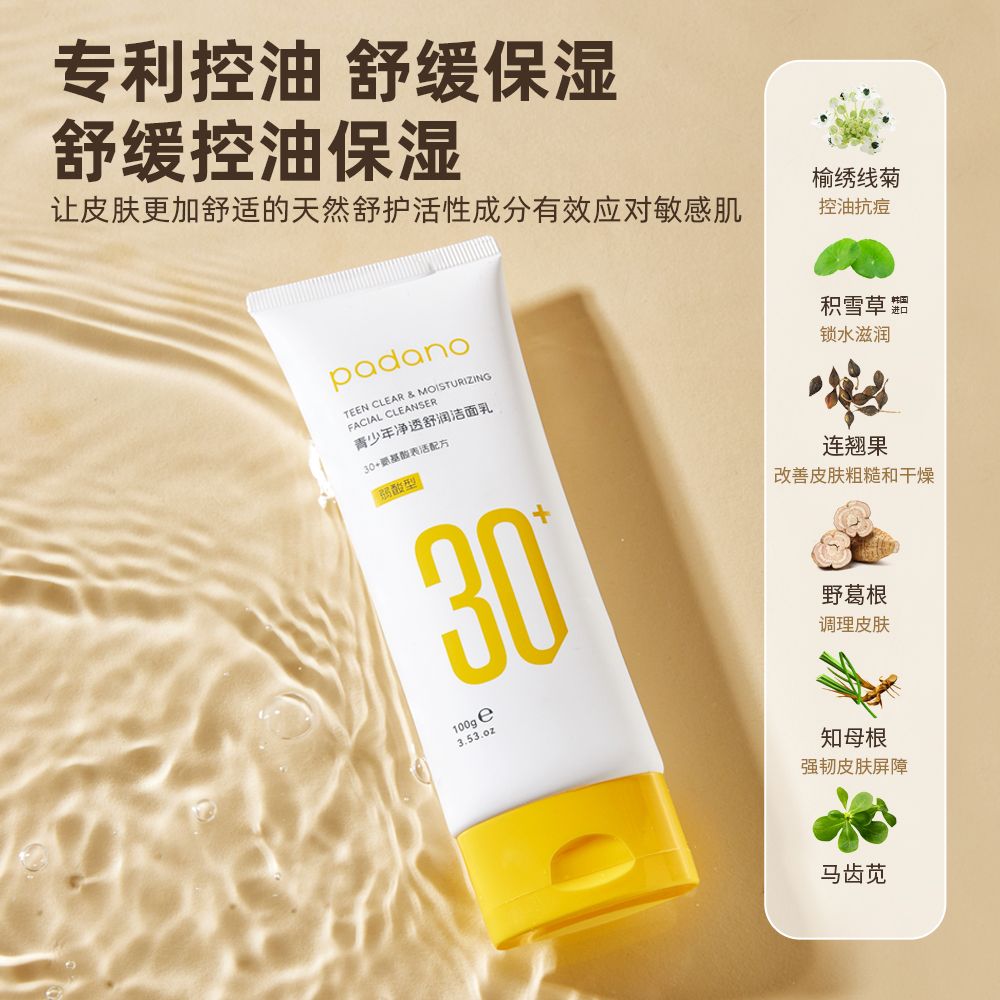 帕达诺青少年洁面乳男女孩学生氨基酸温和清爽保湿洗面奶100g+20g