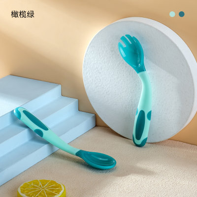 英氏(Yeehoo)蘑菇头温感变色训练叉勺 橄榄绿