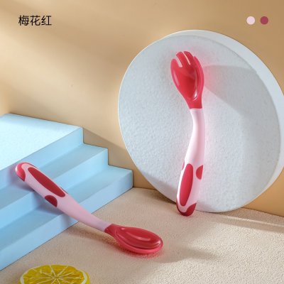 英氏(Yeehoo)蘑菇头温感变色训练叉勺 梅花红