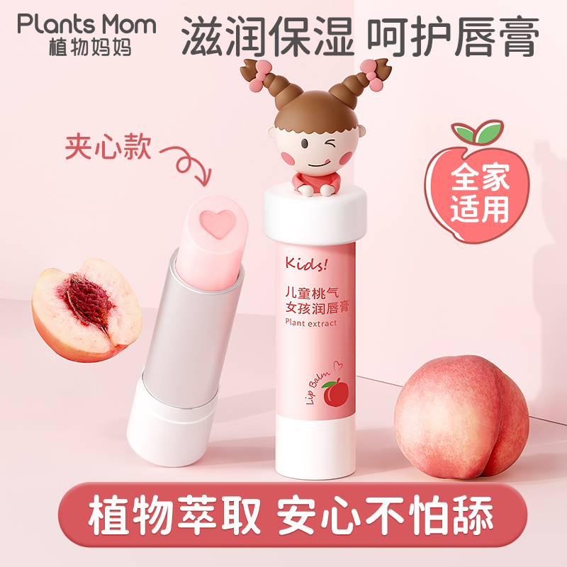 植物妈妈桃气女孩润唇膏3.6g小女孩专用宝宝润唇膏滋润保湿防干裂孕妇可用