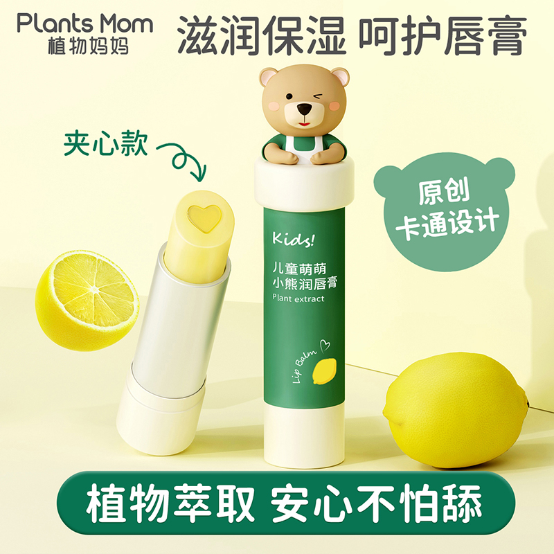 植物妈妈儿童萌萌小熊润唇膏3.6g女孩男孩宝宝婴儿润唇膏滋润保湿孕妇可用