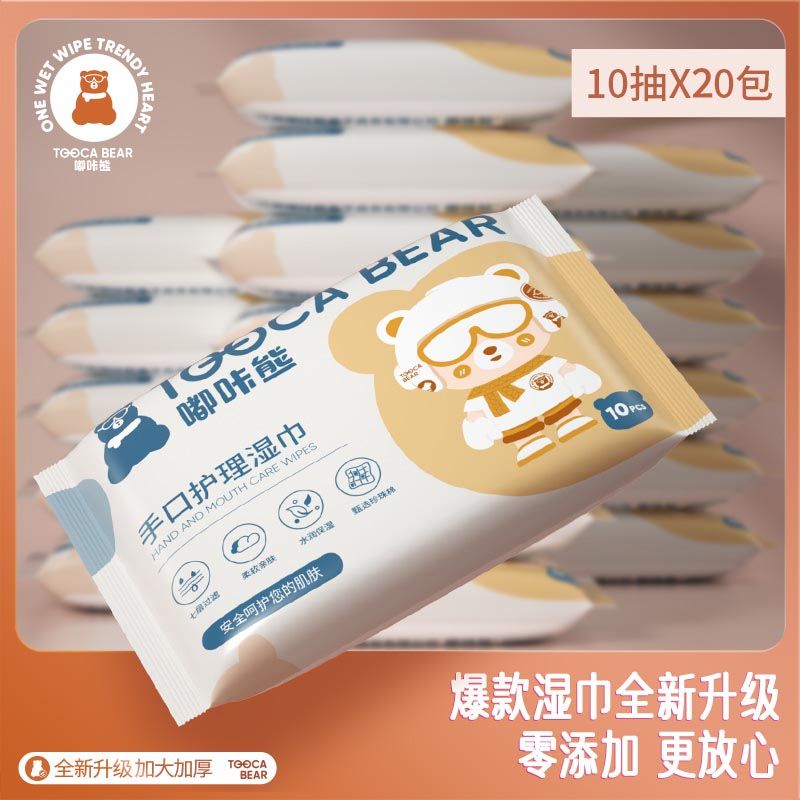 嘟咔熊手口湿巾便携装10抽出游工作便携式-马卡龙系列