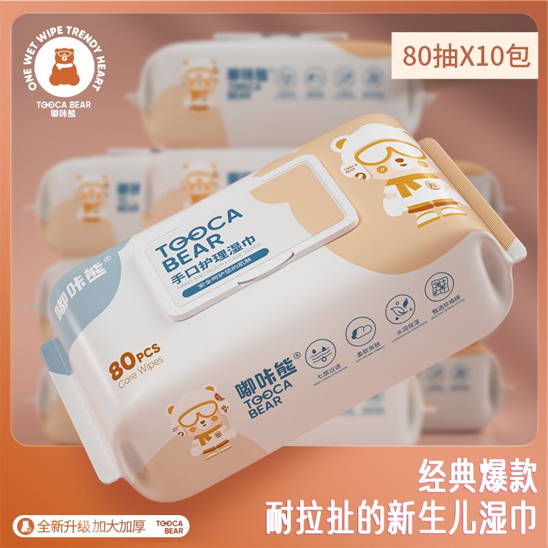 嘟咔熊手口湿巾80抽10包家庭装-马卡龙系列