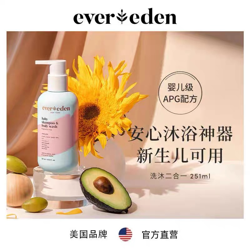 Evereden安唯伊婴儿洗沐二合一保湿沐浴露洗发水无泪低泡 251ml