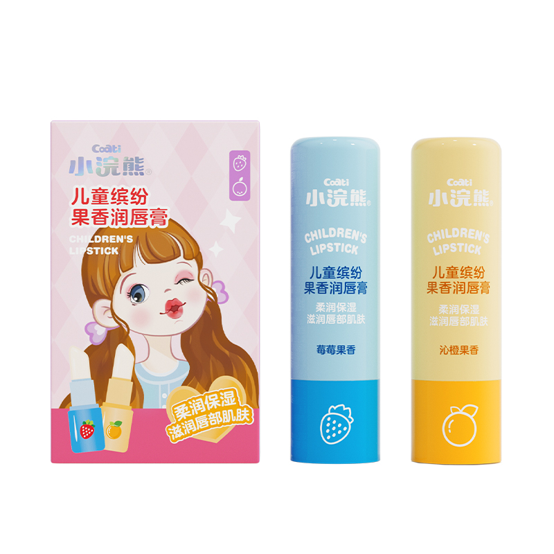 【品牌直供】小浣熊果香缤纷润唇膏3.8g两支装儿童学生护唇补水保湿润唇膏口味可选