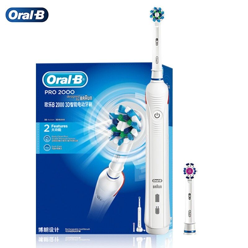 欧乐B电动牙刷P2000白色 成人情侣礼物3D声波旋转式充电式牙刷(标配刷头*2)