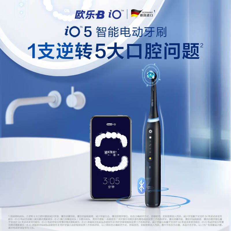 欧乐B电动牙刷成人iO5 小圆头牙刷情侣礼物智能牙刷 微震科技非声波(含刷头*2)