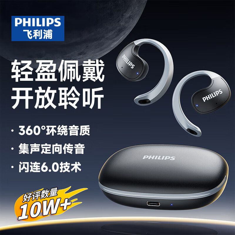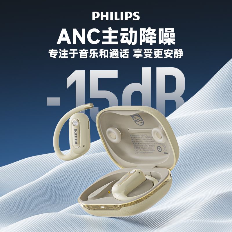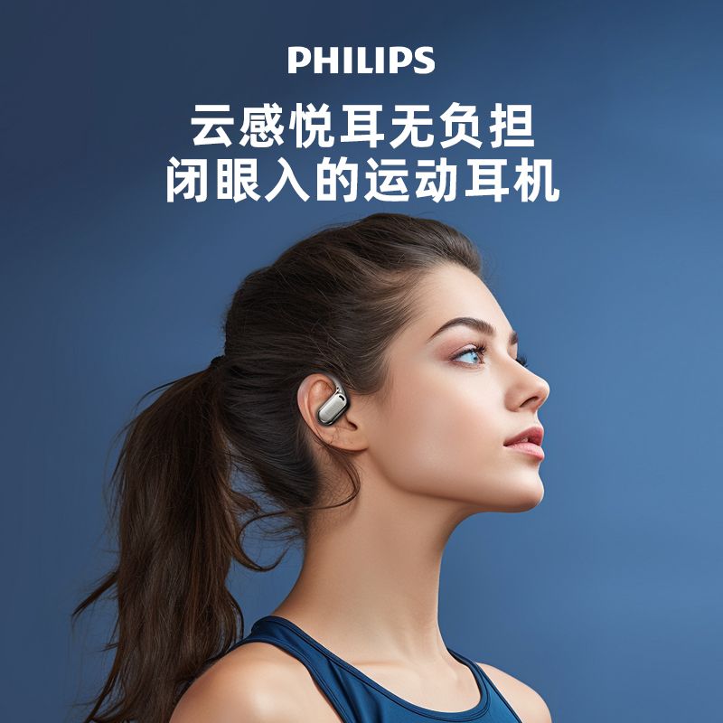 飞利浦(PHILIPS)真无线 蓝牙耳机 开放式挂耳式耳夹式高端运动通话降噪耳机TAT2719