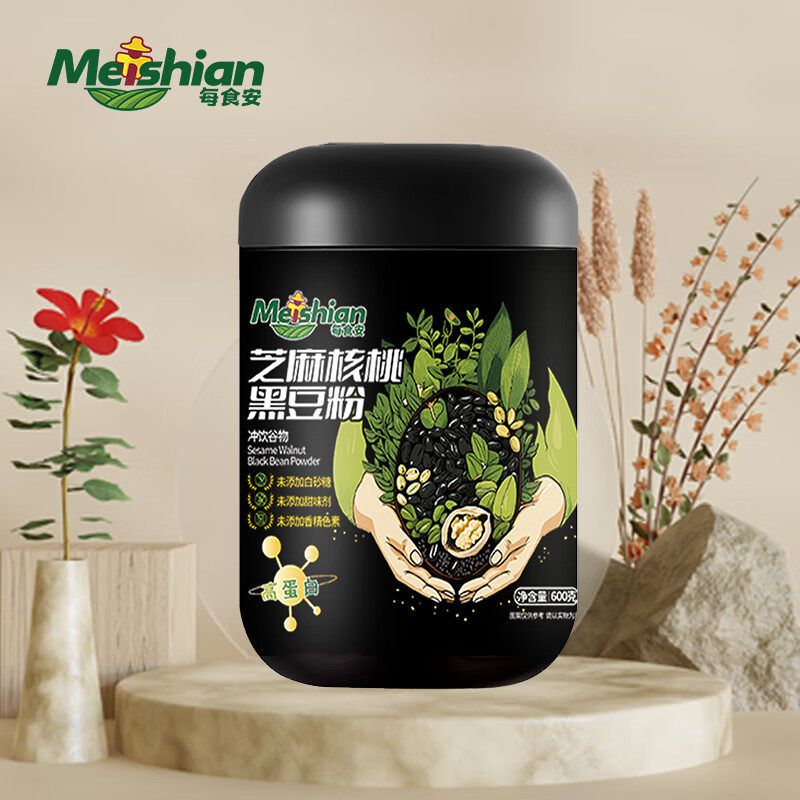 每食安(MEISHIAN)芝麻核桃黑豆粉600g 以黑养黑 高蛋白营养早餐代餐粉