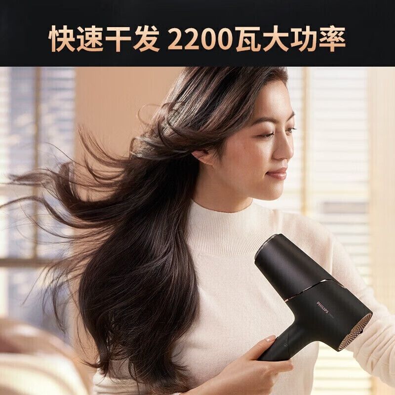 飞利浦电吹风机 BHD538/25黑色 温感焕护4000万负离子 矿物质锌离子大功率速干 蓬松高颅顶
