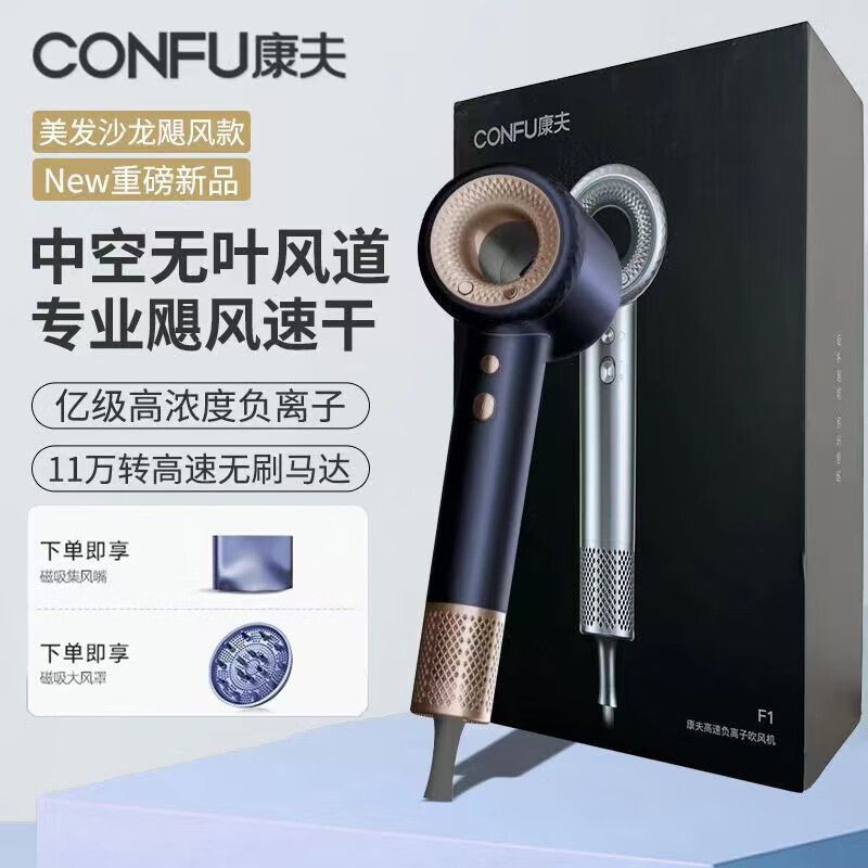 康夫(CONFU)高速电吹风机中空无叶家用生日礼物大功率大风力负离子速干护发送女友吹风筒F9