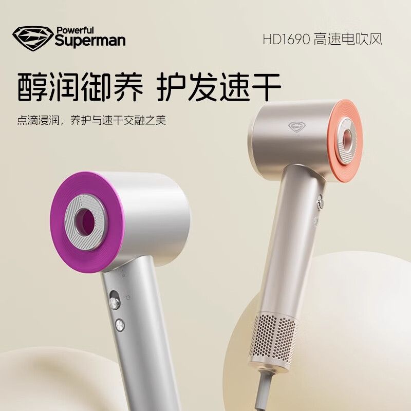 超人(SID)家用电吹风机水润负离子大风量速干便携简约吹风筒宿舍学生旅行用电吹风 高速吹风机-HD1690