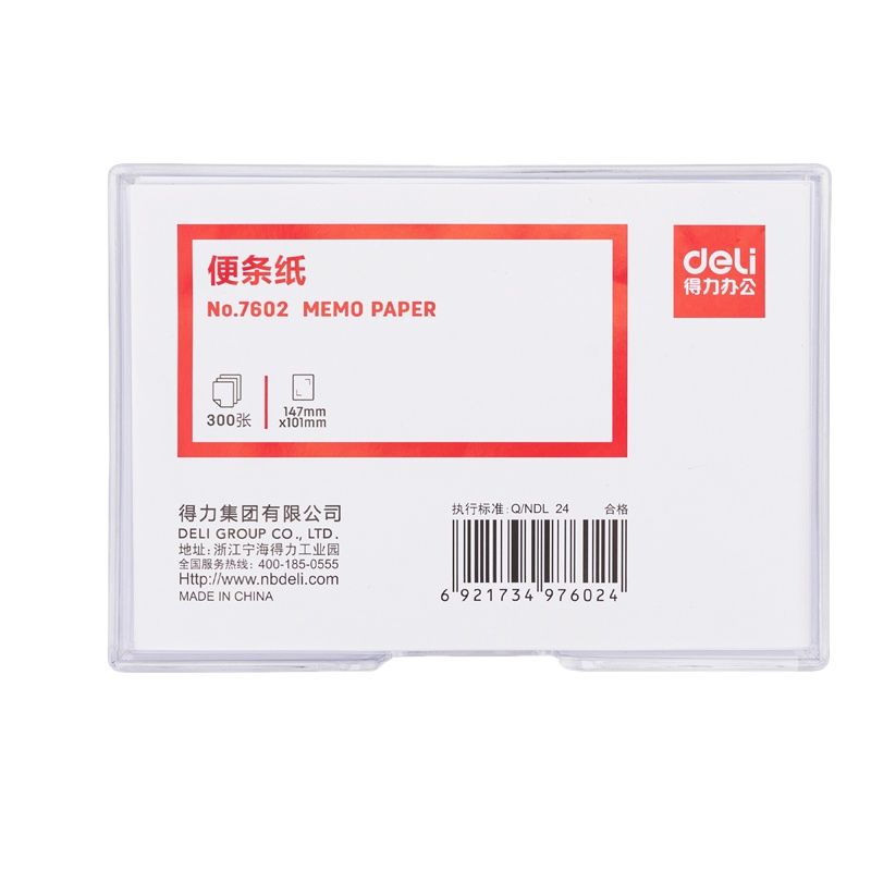得力 7602便条纸带盒155*101(白)300张*5盒