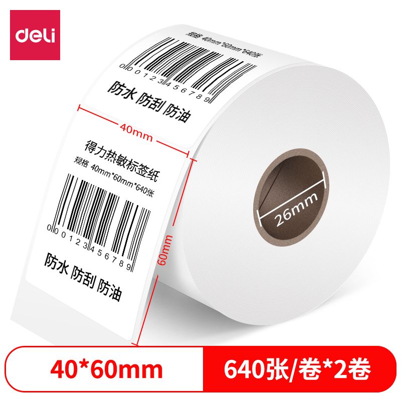 得力 12012珊瑚海三防热敏标签纸40*60mm-640枚(白)(2卷/筒)*4筒