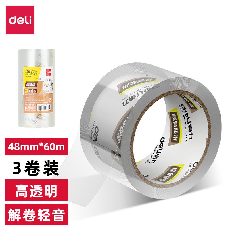 得力 JD84轻音封箱胶带48mm*60m*55μm(高透)(3卷/筒)*3筒