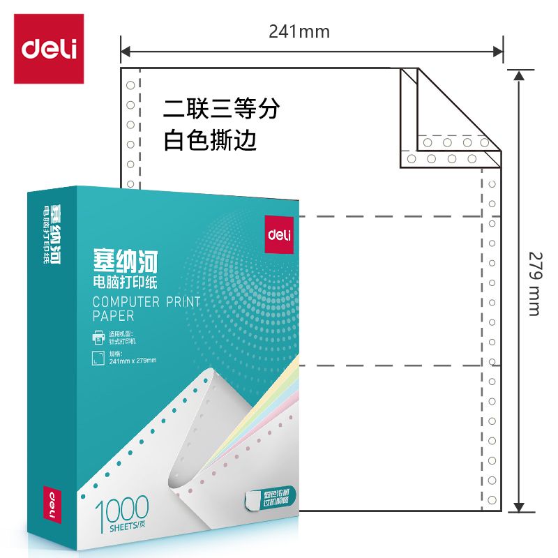 得力 塞纳河N241-2电脑打印纸(1/3S白色撕边)(1000页/盒)*1盒