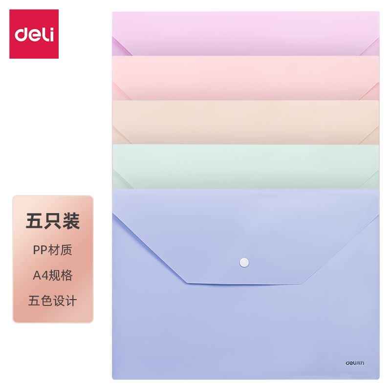 得力 PP301-5文件袋(马卡龙混)(5个/包)*10包