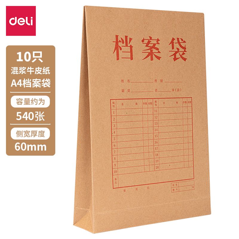 得力 5953牛皮纸档案袋(混浆)(米黄色)(10只/包)*8包
