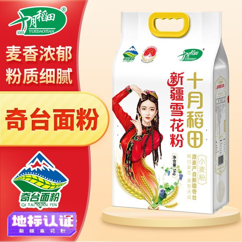 十月稻田 新疆奇台面粉5kg 雪花粉 白面 中筋小麦粉 面条饺子粉 家庭面粉 新日期