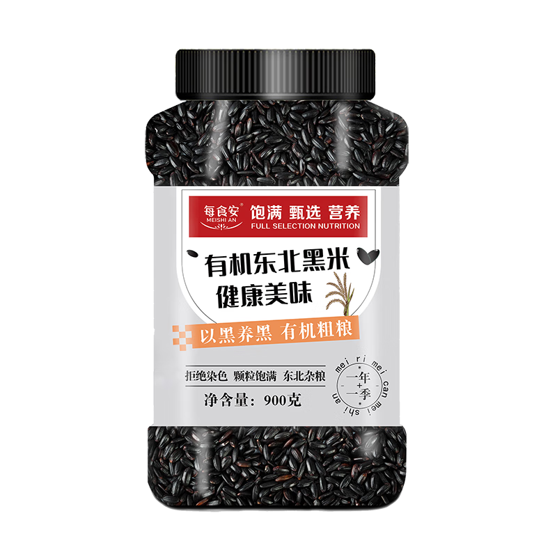 每食安东北有机黑米900g 东北黑米杂粮 黑香米 黑土终止 五谷杂粮 罐装