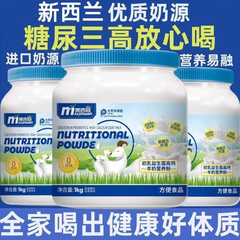 【新西兰奶源】美吉冠蓝胖子初乳益生菌高钙羊奶营养粉即1KG/罐中老年女士儿童成人