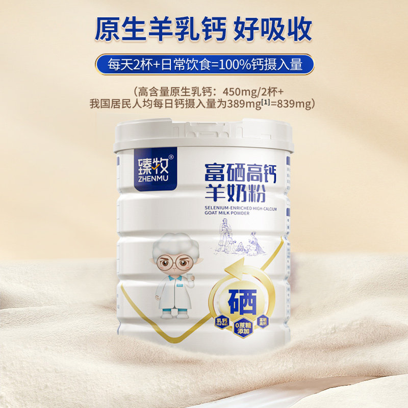 臻牧富硒高钙羊奶粉800克/罐瑞士奶源优质蛋白无蔗糖成人中老年羊乳粉