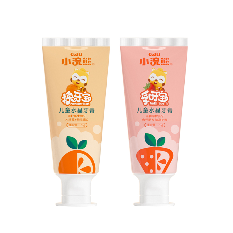 【品牌直供】小浣熊儿童水晶牙膏70g乳牙宝换牙宝草莓+香橙果味牙膏无氟宝宝可用
