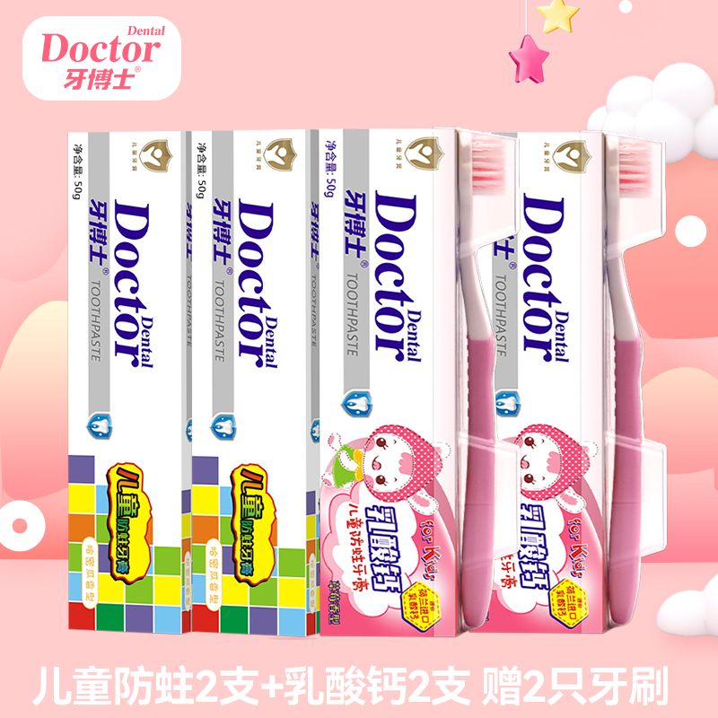 Doctor/牙博士儿童防蛀牙膏组合哈蜜瓜味50g*2支+AD钙草莓味50g*2支+牙刷2组