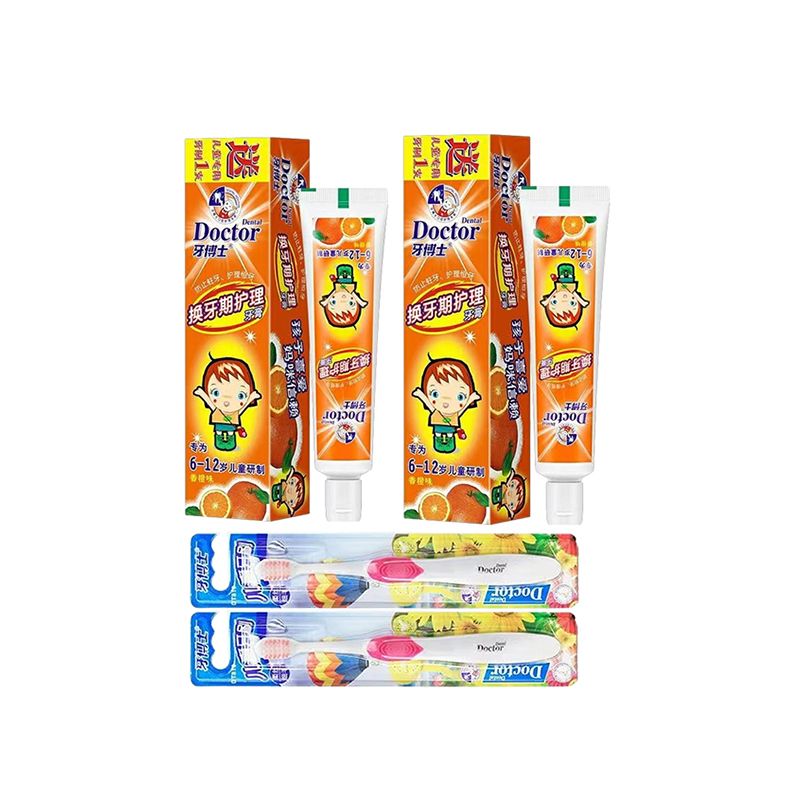 牙博士儿童换牙期6-12岁套装橙味(50g+牙刷)*2组