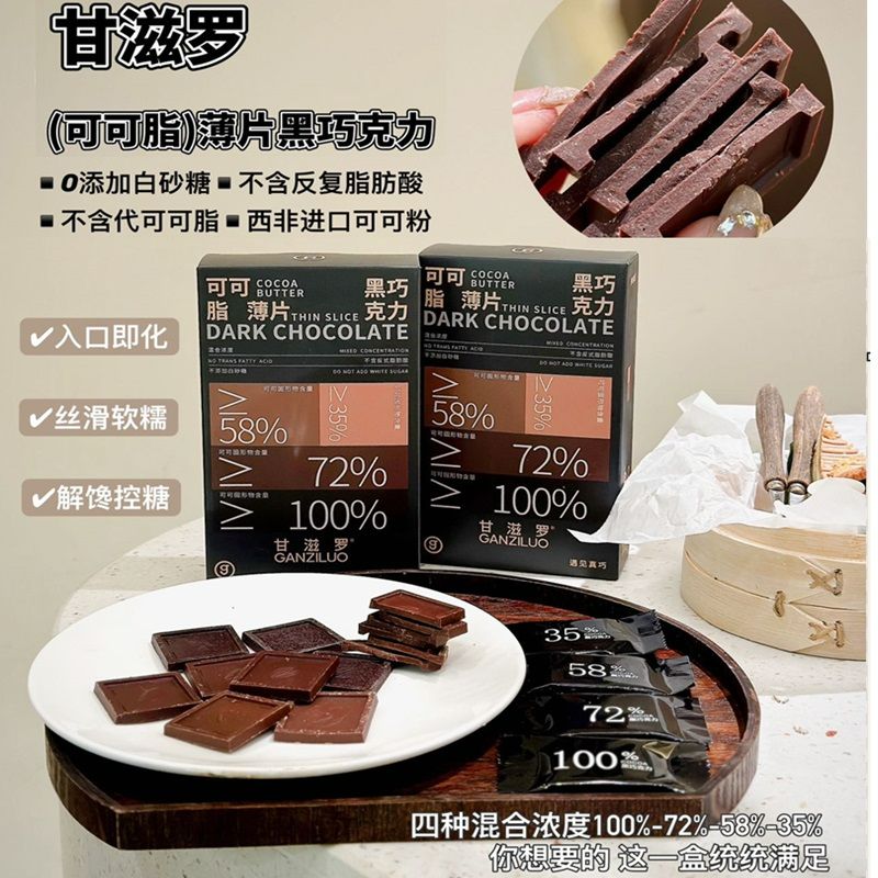【无蔗糖】甘滋罗 可可脂薄片黑巧克力(混合浓度)100g/盒 下午茶办公室网红零食新鲜日期