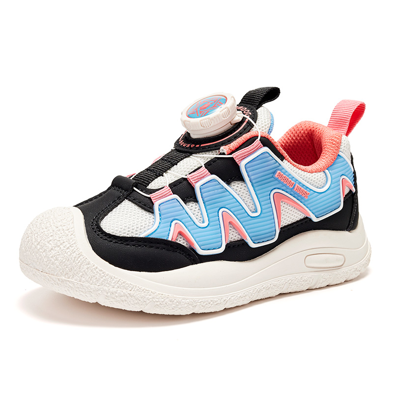 巴布豆house童鞋【品牌直供】2025春秋季旋转纽扣易穿脱男女童潮流百搭网面休闲滑板鞋
