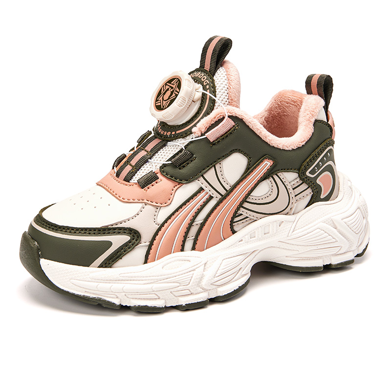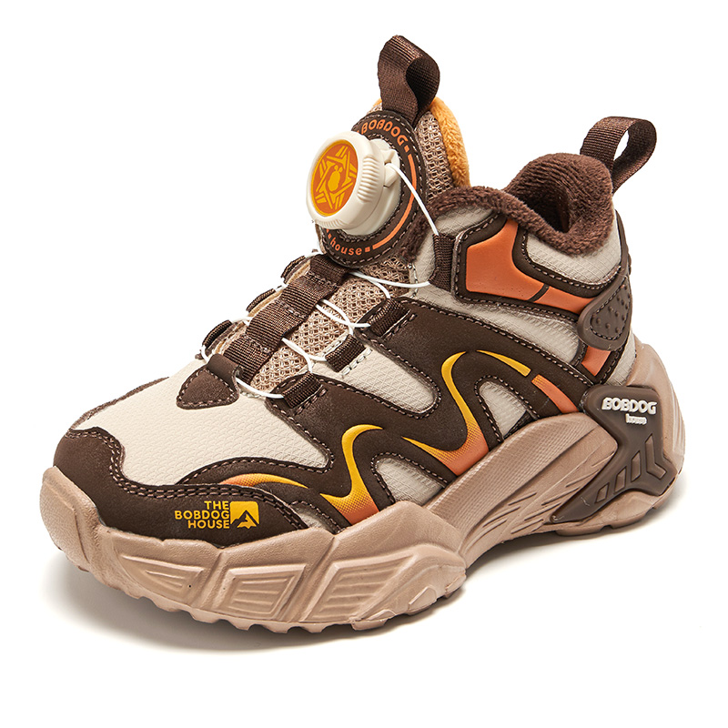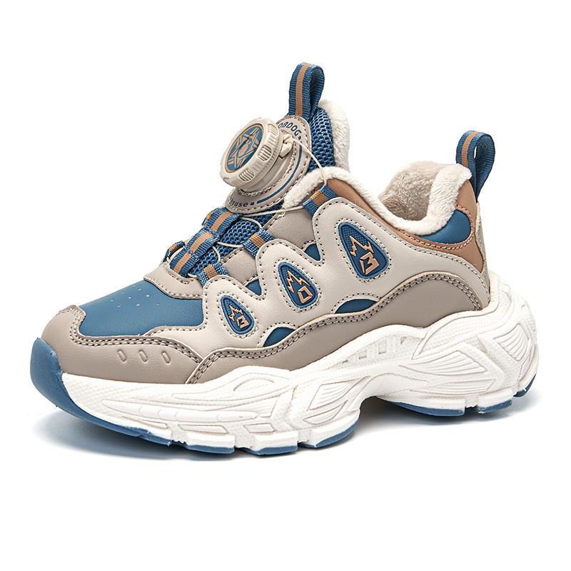 巴布豆house童鞋冬季新款加绒旋转扣休闲鞋男童女童加厚保暖运动鞋