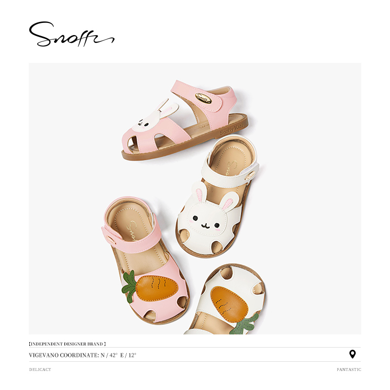 Snoffy斯纳菲女童凉鞋2023夏季新款儿童公主软底鞋卡通宝宝包头鞋