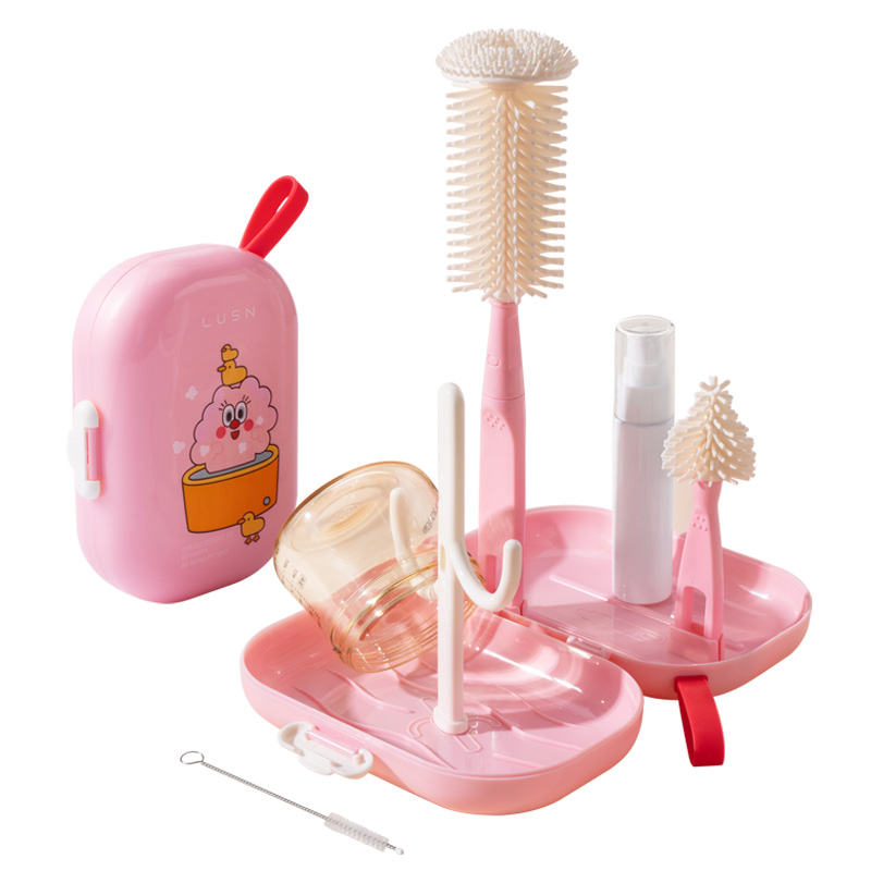 如山便携式奶瓶刷新生婴儿专用硅胶杯刷宝宝清洗清洁刷子沥水架