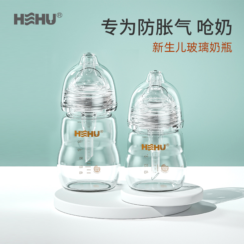 【带防胀气装置】呵护婴幼儿宽口玻璃奶瓶高硼硅玻璃材质防呛新生儿喝水喝奶 150/200ml