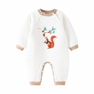 班杰威尔 加厚婴儿连体衣秋冬季肩开扣纯棉无骨宝宝哈衣 73cm 加厚松子鼠