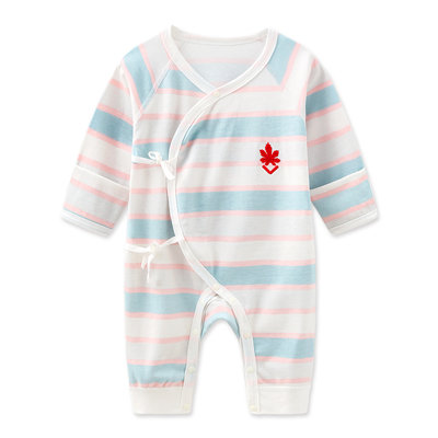 班杰威尔 新生儿衣服纯棉连体衣 59cm 枫叶条纹浅蓝