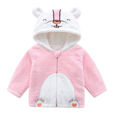 班杰威尔 秋冬款宝宝连帽保暖珊瑚绒上衣 80cm 兔兔粉绒衫