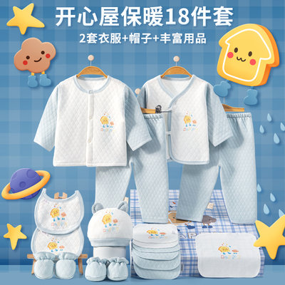 班杰威尔 新生儿礼盒婴儿衣服用品套装 A59cm 加厚开心屋蓝