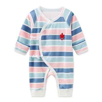 班杰威尔 新生儿衣服纯棉连体衣 66cm 枫叶条纹浅蓝