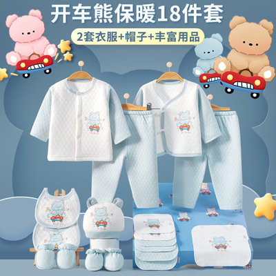 班杰威尔 新生儿礼盒婴儿衣服用品套装 A59cm 加厚开车熊蓝