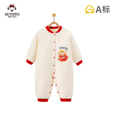 班杰威尔 婴儿连体衣新生儿宝宝棉服夹棉冬装哈衣爬服 66cm 加厚顽皮猴