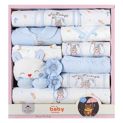 班杰威尔 新生儿礼盒婴儿衣服套装 18件套 灰小兔 蓝色