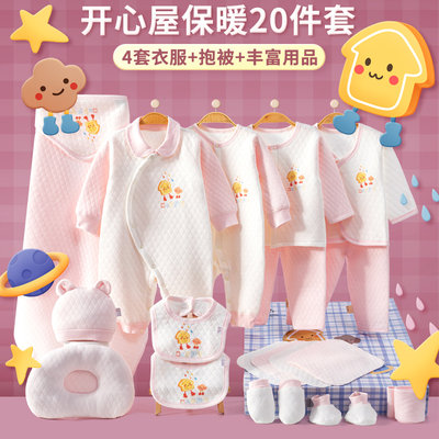 班杰威尔 新生儿礼盒婴儿衣服用品套装 B59cm 加厚开心屋粉