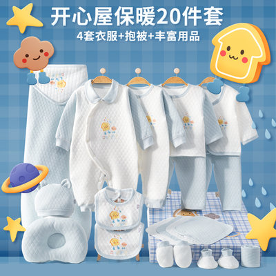 班杰威尔 新生儿礼盒婴儿衣服用品套装 B59cm 加厚开心屋蓝