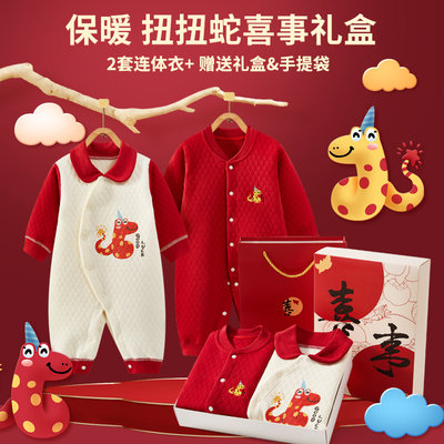 班杰威尔 婴儿夹棉连体衣冬季宝宝衣服 59cm 扭扭蛇2件套装(纯色+满印)